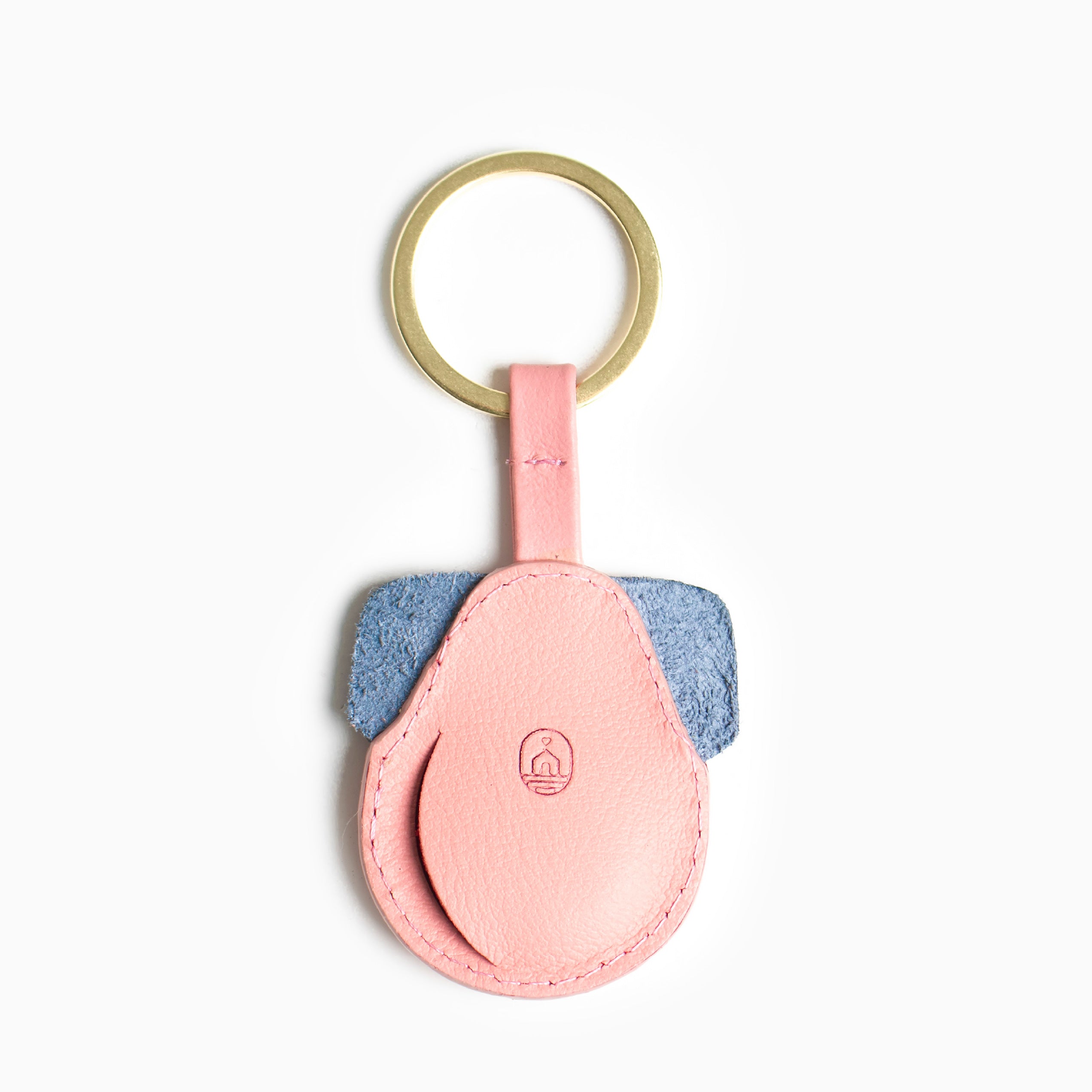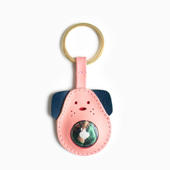 A sleek pink and navy leather dog key holder designed to keep your Apple AirTag protected with style.